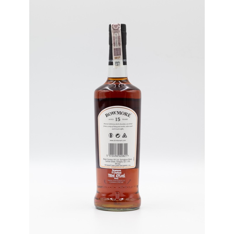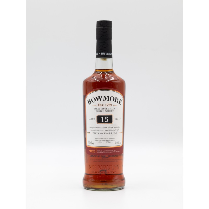 BOWMORE 15YO SHERRY CASK FINISH WHISKY. To właśnie ona zastąpiła poprzednią wersję Bowmore 15YO „Darkest". Główną różnicą między tymi dwoma alkoholami jest bliżej niesprecyzowany okres leżakowania BOWMORE 15YO SHERRY CASK FINISH WHISKY w beczkach po Sherry Oloroso. Poprzedniczka leżakowała w tych beczkach przez 3 lata. Alkohol ten to bez wątpienia jeden z najbardziej zbalansowanych produktów Bowmore. To whisky o bogatym, głębokim kolorze i ciepłym, delikatnym finiszu. Jej bogaty smak pełen rodzynek, jak i delikatny, dymny posmak trunku dają dodatkowo wyśmienitą, czekoladową głębię. BOWMORE 15 LETNIA SHERRY CASK FINISH WHISKY została stworzona w beczkach po bourbonie whiskey oraz w tych po Sherry Oloroso. To właśnie dzięki leżakowaniu w nich, alkohol ten nabrał swojego wyjątkowego smaku i aromatu.